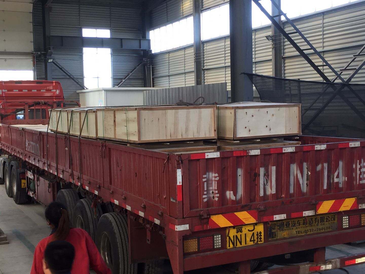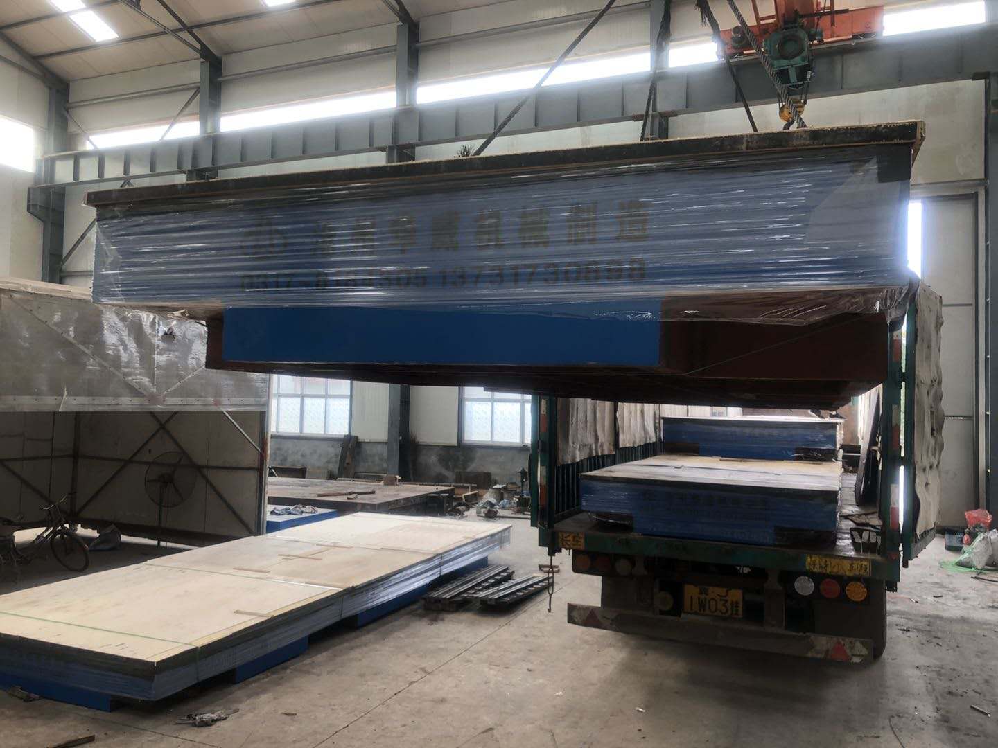 台上得四个起重孔,将铸铁平板平稳吊装在运输工具上。
